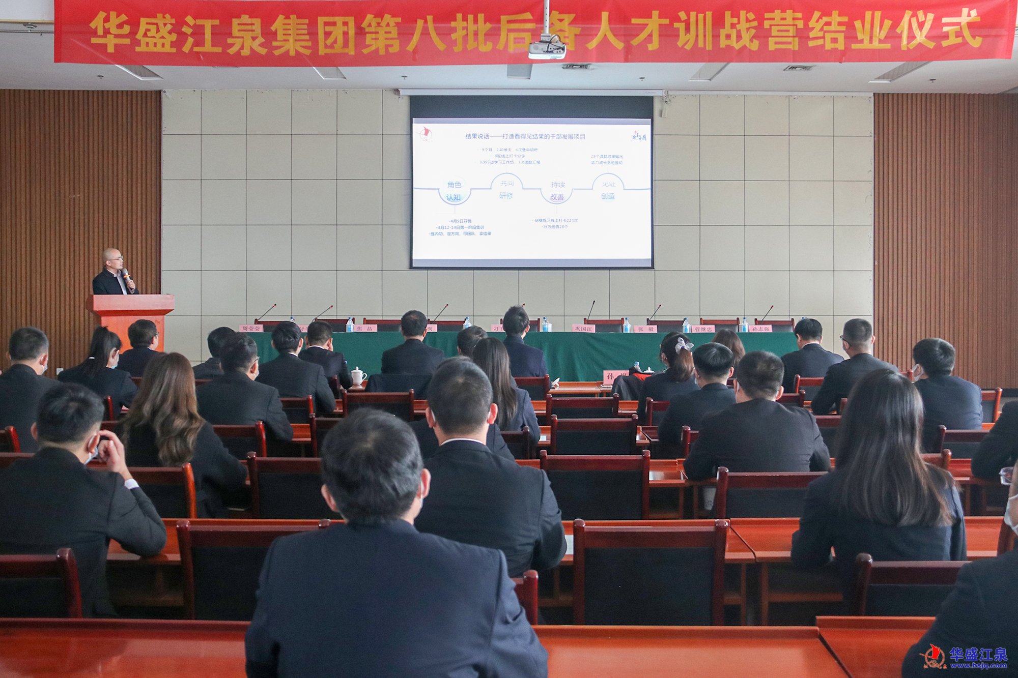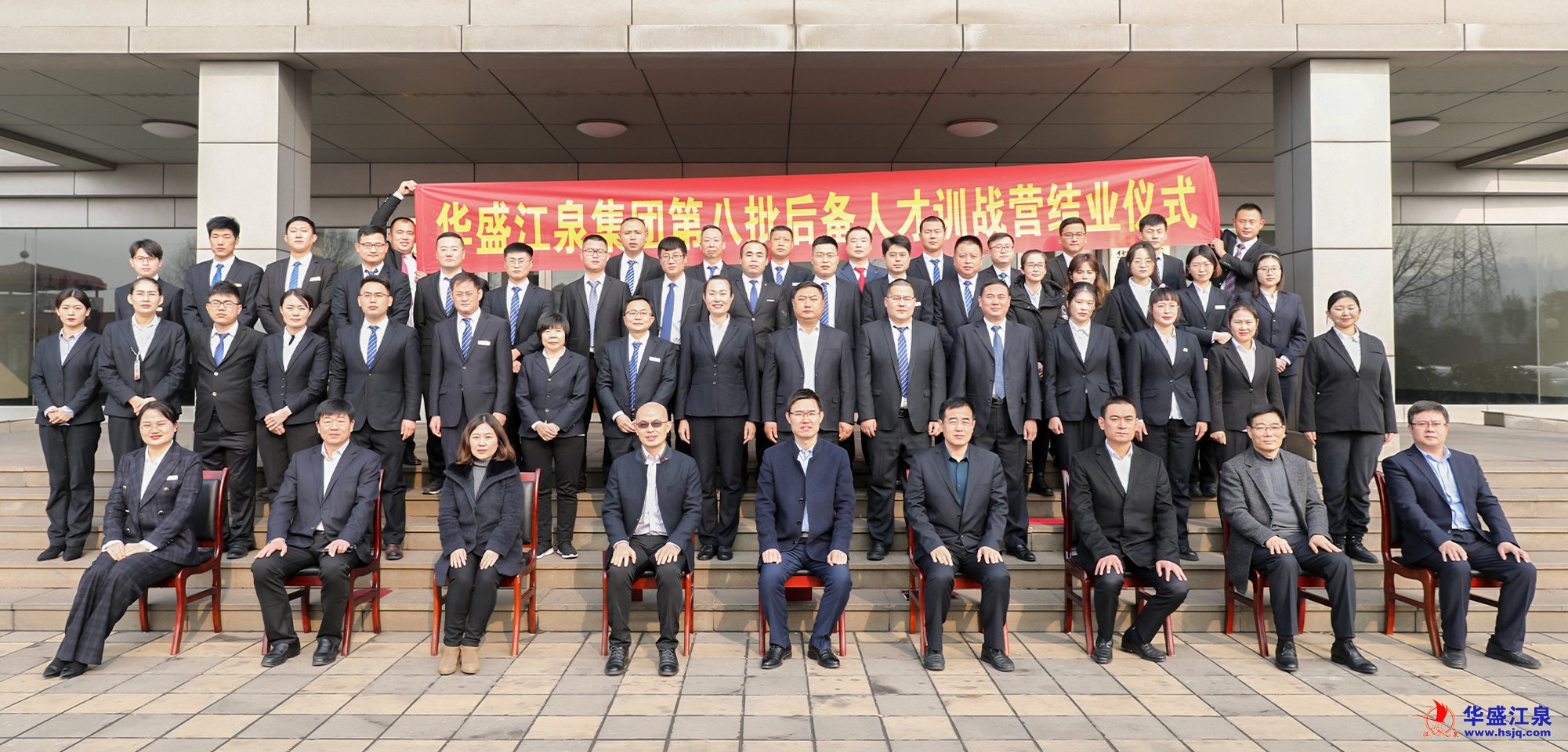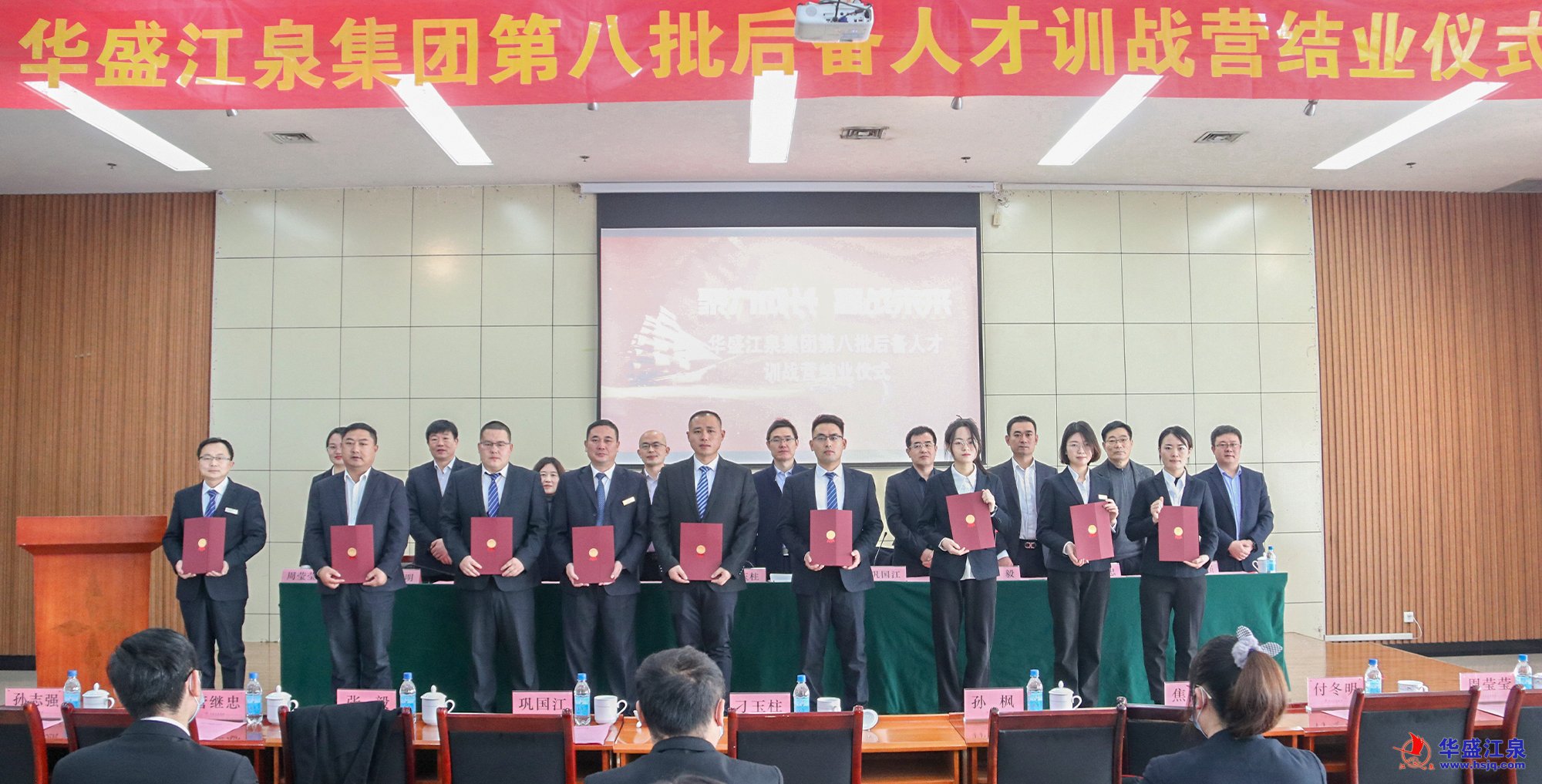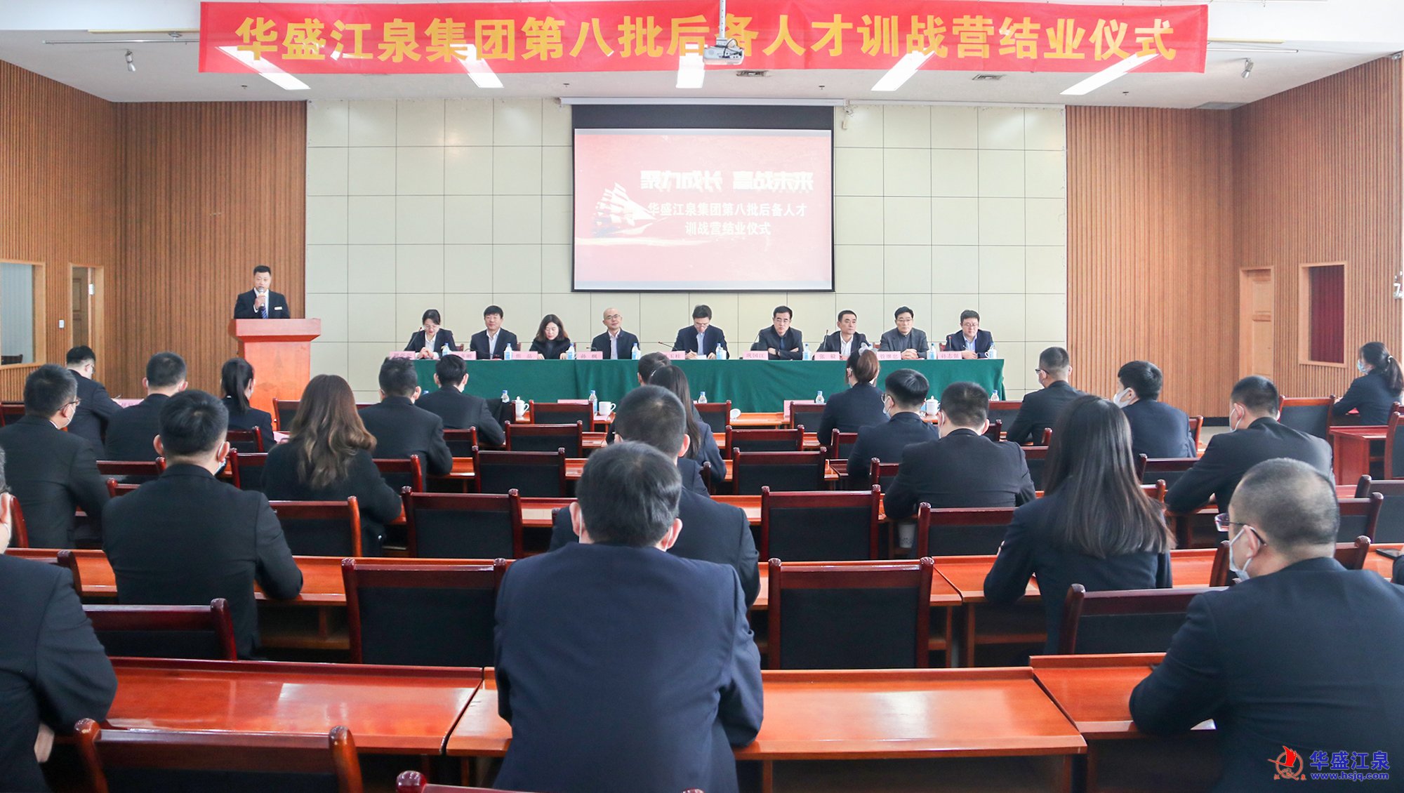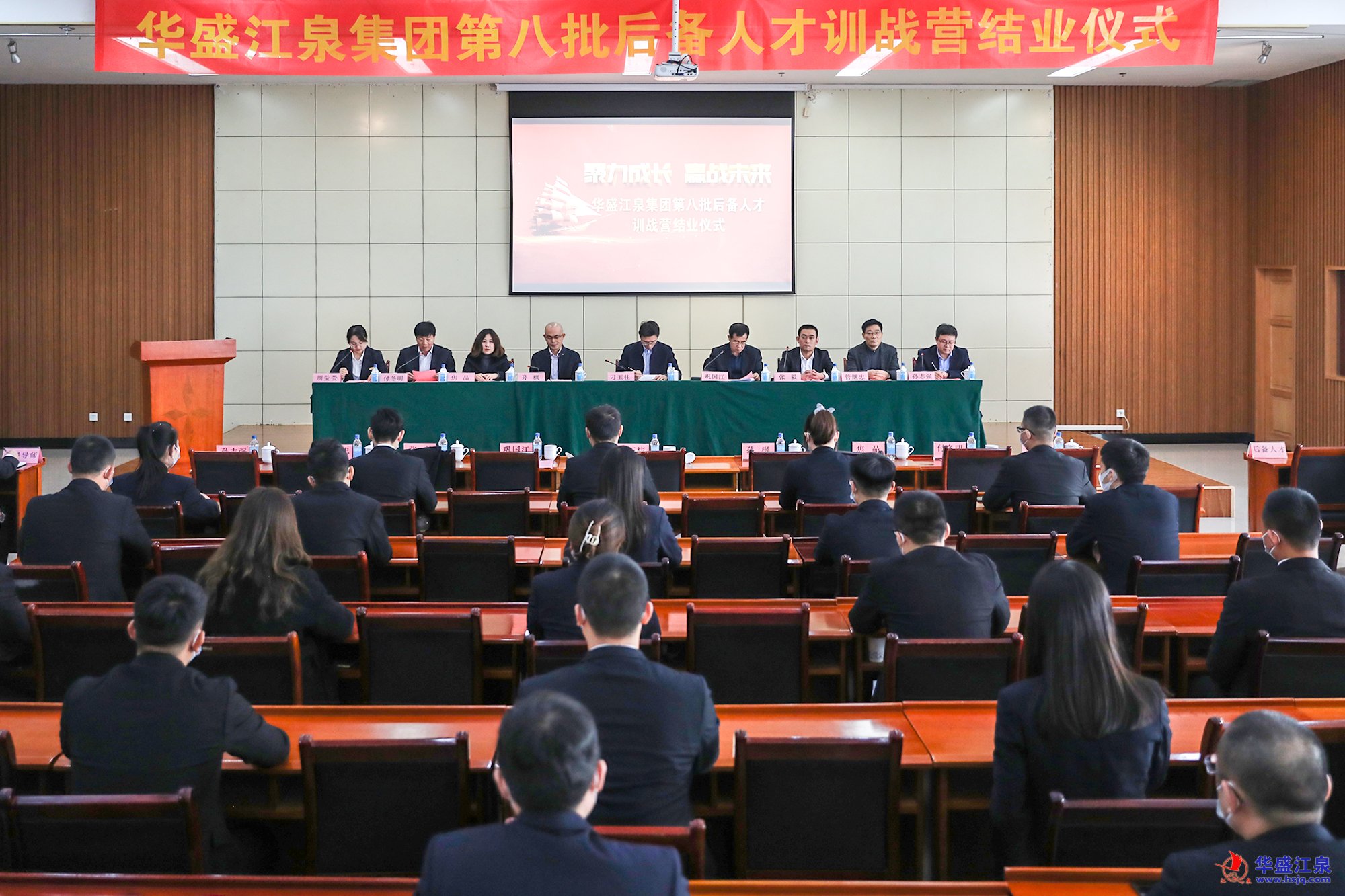 付冬明在儀式上宣讀《關于華盛江泉集團第八批后備人才結業的決定》,宣布對孟子程、李德麗等28名后備人才給予正式結業。付冬明指出,為貫徹落實華盛江泉集團人才建設的相關要求,為集團可持續發展儲備各類生產經營管理人才,集團開展了第八批后備人才的選拔培養活動,經過嚴格的筆試、面試最終28人通過選拔。培訓期間學員嚴格遵守培訓紀律,認真進行學習研究,所有培訓任務均已按計劃保質保量完成。后備人才是促進集團公司發展的中堅力量,也是人才隊伍建設的重要組成部分,他希望歷屆后備人才要珍愛企業、夯實基礎、厚積薄發、勇于創新,攜手共創華盛江泉的美好未來。