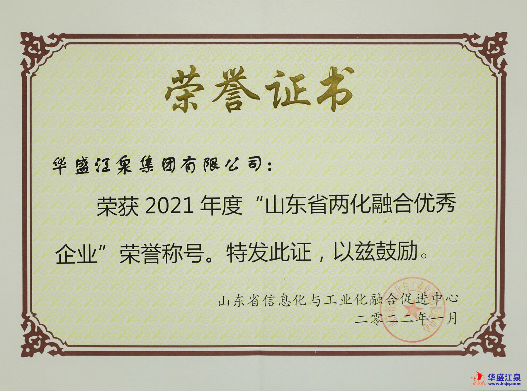 近日,經(jīng)山東省兩化融合相關(guān)部門及專家團(tuán)共同審核評(píng)定,華盛江泉集團(tuán)獲得“2021年度山東省兩化融合優(yōu)秀企業(yè)”榮譽(yù)稱號(hào),這是繼2018年后集團(tuán)再度獲評(píng)省級(jí)兩化融合優(yōu)秀企業(yè)稱號(hào)。