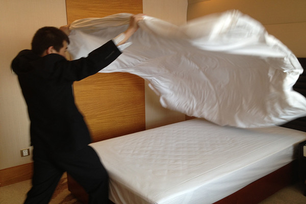 2013年4月11日14時(shí),第三屆“勞動(dòng)之星”職業(yè)技能競(jìng)賽實(shí)踐操作由江泉城承辦的中式做房在江泉城客房部7樓正式啟動(dòng)。本次比賽共計(jì)20名參賽選手,集團(tuán)公司對(duì)比賽全程進(jìn)行了現(xiàn)場(chǎng)監(jiān)督。繼今日的比賽項(xiàng)目之后其他工種的比賽也將在近期陸續(xù)展開(kāi)。