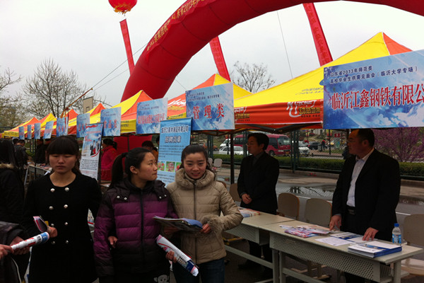 2013年4月20日9時,由山東省教育廳主辦的山東省2013年高校畢業生供需見面會暨臨沂大學2013年綜合類招聘會在臨沂大學新校區籃球場舉行。集團公司人力資源部及分公司人事負責人一行14人參加了本次的招聘。